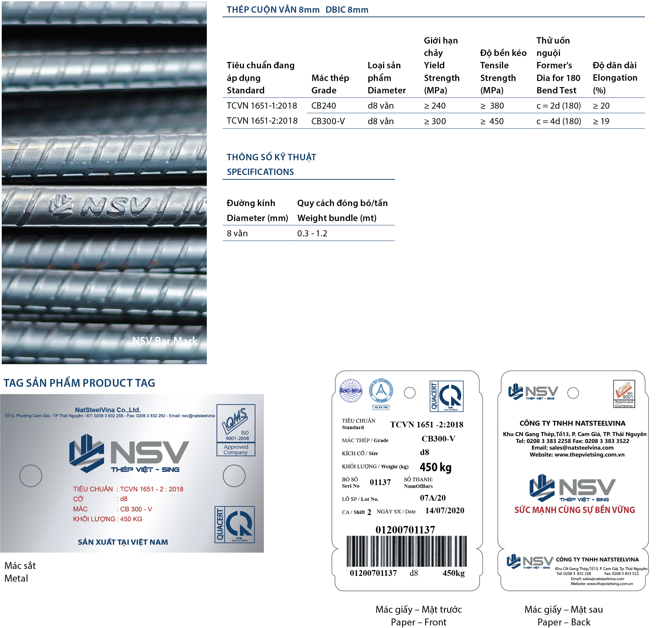 | Bề mặt | Nhẵn, dập nổi logo thương hiệu NSV |
