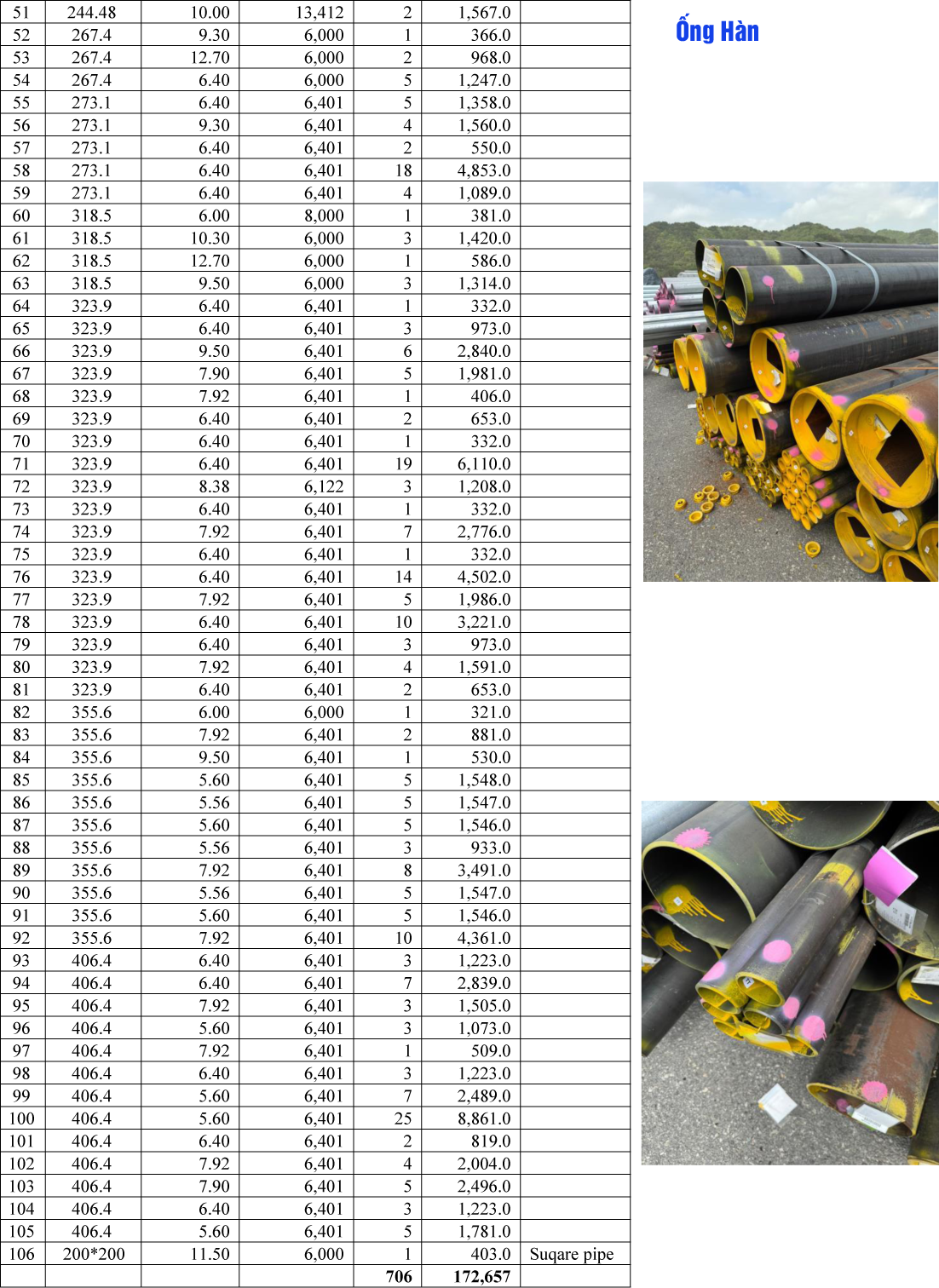 Ống thép size lớn Trung Quốc phổ biến có đường kính từ DN250 đến DN600 (hoặc lớn hơn, lên đến DN800), bao gồm ống đúc liền khối và ống hàn, thường có độ dày thành ống từ SCH5 đến SCHXXS (khoảng 3.5mm - 30mm), sản xuất theo tiêu chuẩn quốc tế như ASTM, API, JIS, dùng trong công trình lớn (thủy lợi, PCCC, đóng tàu) với giá cạnh tranh, có CO/CQ đầy đủ.