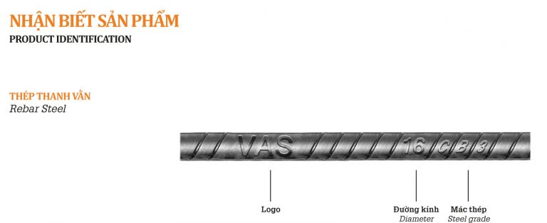 Trên mỗi thanh thép thanh vằn Việt Mỹ đều có: Logo + Đường Kính + Mác thép. Được in nổi trên mỗi thanh thép vằn để tránh hàng giả.
