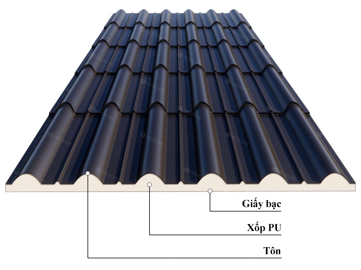 – Lớp PU (Polyurethane): Lớp PU có tính năng cách âm, cách nhiệt rất tốt nên phù hợp để sử dụng trong việc chống nóng và chống ồn, nhất là đối với công trình nhà ở dân dụng, công trình công nghiệp. Với lớp này, không gian bên trong nhà luôn mát mẻ vào mùa hè, ấm áp khi đông đến.
